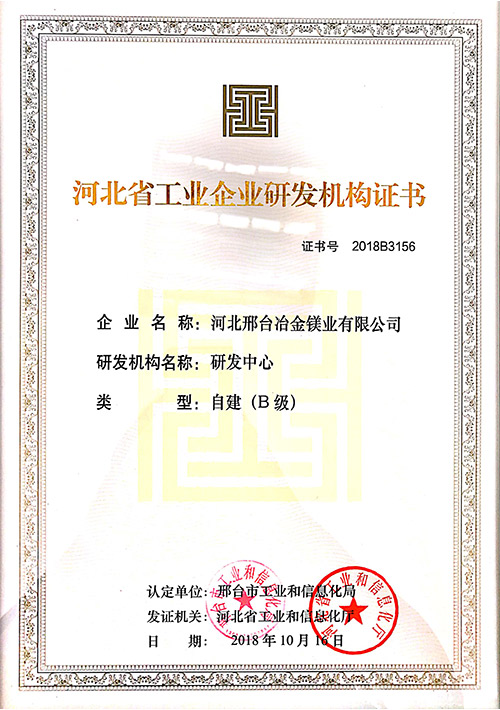 河北省工業(yè)企業(yè)研發(fā)機(jī)構(gòu)證書